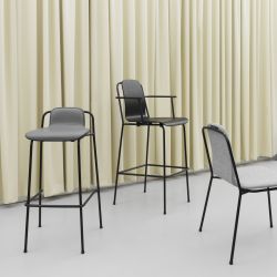 La combinazione della struttura in acciaio nero e della seduta in impiallacciato dona allo sgabello Studio freschezza contemporanea e ricercata semplicità.