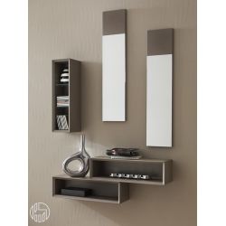 Mobile ingresso composto da mensole, specchi e un box verticale.