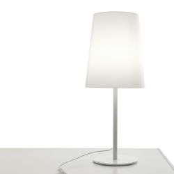 Lampada da tavolo con base e stelo in acciaio laccato bianco o nero; diffusore realizzato in policarbonato. Questa lampada moderna è perfetta per creare luce d'atmosfera nel salotto o nella camera da letto.