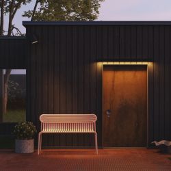 Questa panca per tre o quattro posti è disponibile anche senza schienale.