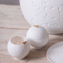 Ciotolina porta candele in porcellana, collezione Story Bird.