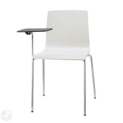 Dotata di tavoletta in tecnopolimero nero, questa sedia impilabile si contraddistingue per l'elegante contrapposizione tra il fronte opaco e il retro lucido.