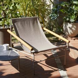 La sedia lounge Dress Code si ispira agli abiti sartoriali e gioca con gli abbinamenti di colore. Pensata per rilassarsi in giardino o in terrazza, ma anche dentro casa, è realizzata con struttura in acciaio verniciato e seduta imbottita e rivestita. I braccioli sono in legno di iroko, diametro 4 cm.