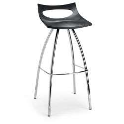 Questo sgabello, ideale per la cucina, presenta la struttura in acciaio tubolare con finitura cromata. La seduta è realizzata in tecnopolimero.