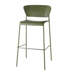 Lo sgabello Lisa Go Green di Scab Design ha la struttura in acciaio tubolare ø 16 mm verniciato a polvere di poliestere, mentre il sedile e lo schienale sono realizzati in tecnopolimero riciclato in tinta con la struttura.