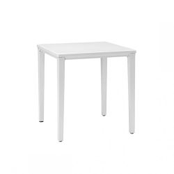 Timo ha una struttura a quattro gambe costituita da un'anima leggera in alluminio ed un rivestimento in tecnopolimero che lo rende resistente e facile da pulire. Il piano di forma quadrata è realizzato interamente in tecnopolimero, disponibile in due misure: 70 x 70 cm oppure 80 x 80 cm.