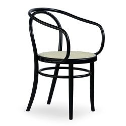 Poltroncina in legno curvato elegante e raffinata, la spalliera è realizzata in un pezzo unico con le gambe posteriori. Un altro elemento in legno curvato definisce i braccioli.