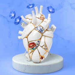Meraviglioso vaso che ricrea nel dettaglio il cuore umano. Rispetto alla versione classica, Love in Bloom Kintsugi è costituito da frammenti in porcellana uniti tra loro dall'oro, una tecnica utilizzata in Giappone per dare nuova vita agli oggetti.