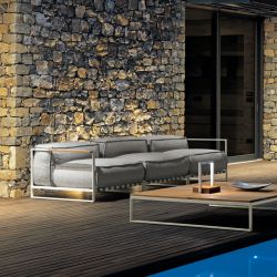 Casilda è un divano componibile ampio e comodo, perfetto per arredare il giardino o l'area conversazione sotto il portico. Il suo design semplice si adatta bene ad ogni contesto e crea un salotto esterno elegante e di grande impatto.