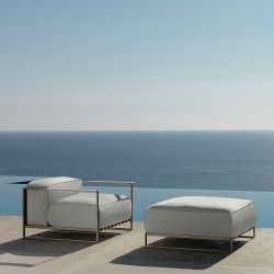 Per completare la seduta è possibile abbinare il pouf della stessa collezione e/o la fodera protettiva per coprire la poltrona quando non si usa.