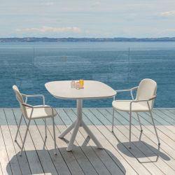 Il tavolo Coral ha un design semplice e raffinato, ideale per creare un'area pranzo esterna elegante e senza tempo.