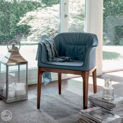 Qualità e artigianalità contraddistinguono Mivida, una poltroncina con la seduta realizzata in poliuretano schiumato a freddo e rivestita.