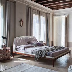 Moderno letto matrimoniale dal design elegante, capace di arredare la zona notte con stile e personalità.