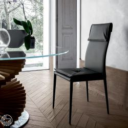 La struttura a 4 gambe in metallo è completamente rivestita, in tinta con la scocca. Adria è disponibile con rivestimento in similpelle oppure in vera pelle, in diversi colori.