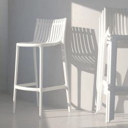 Lo sgabello Ibiza con il suo design si adatta ad ogni ambiente. La collezione Ibiza per le forme si ispira ad oggetti di plastica portati dal mare, come fossero conchiglie artificiali.