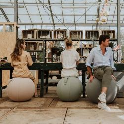 Le palle Vluv, oltre ad essere delle comode sedute, sono anche oggetti di design, pensati per arredare l'ufficio, la zona living o l'area studio con eleganza e precisione. Il rivestimento esterno in tessuto limita l'espansione della palla interna garantendo la posizione eretta della schiena.