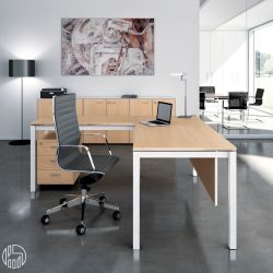 Scrivania per ufficio con struttura in tubo d'acciaio; gambe 50x50 mm e travi 50x20 mm, tutto verniciato a polveri epossidiche nelle finiture cromato, grigio argento, grigio ombra o bianco.