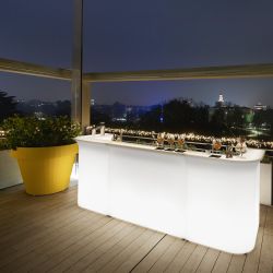 Realizzato in polietilene riciclabile, un materiale plastico resistente alle alte temperature e ai raggi UV, questo bancone Made in Italy è infatti garantito anche per l'esterno.