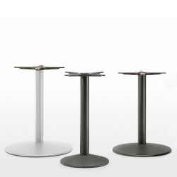 Basamento per tavolo da bar o ristorante, con base a terra rotonda in fusione di ghisa e colonna centrale in tubolare di acciaio ∅76 mm. La base a terra è dotata di piedini di appoggio fissi o regolabili.